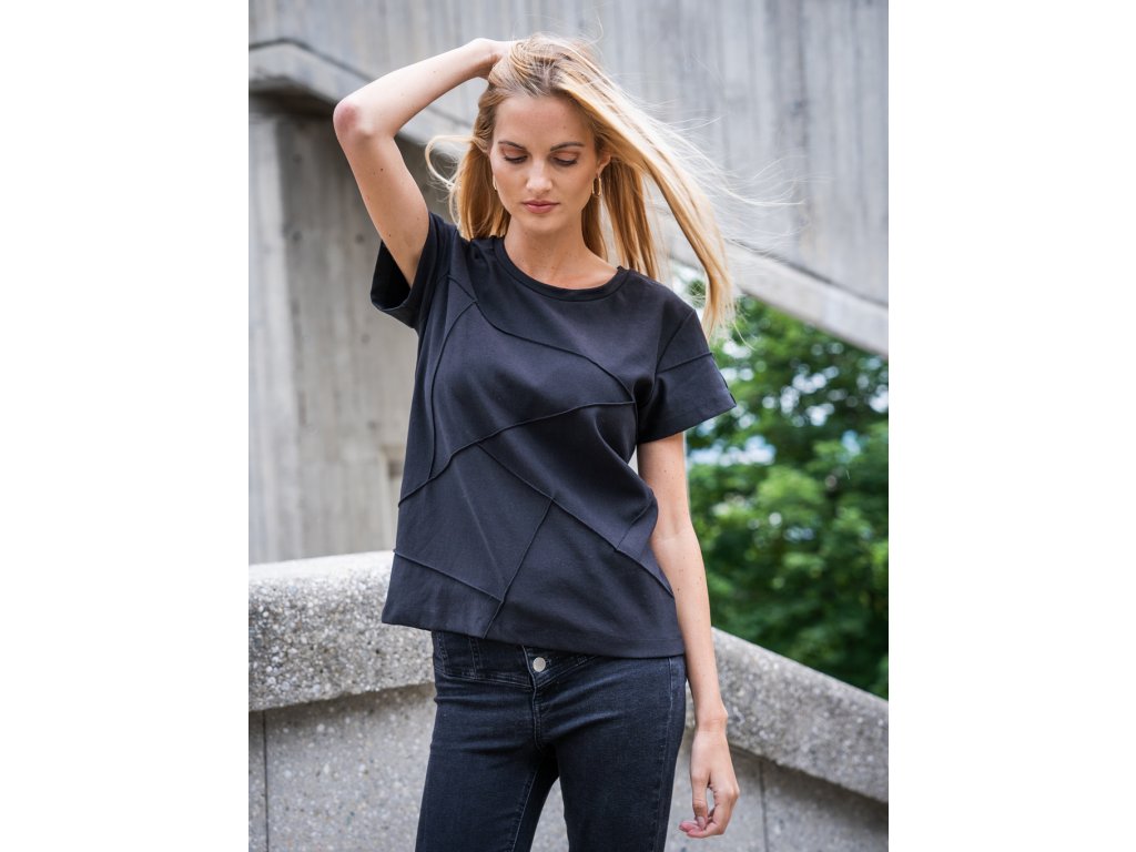 Kdekoliv se v tričku s prošíváním ve tvaru krystalů objevíte, bude hned jasné, že jde o designový kousek.