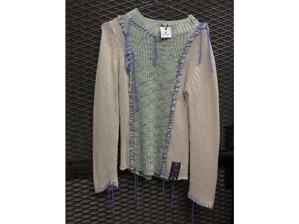 Svetřík v zajímavé barevné kombinaci, kde modrozelený trup tvoří hlavní základ celého kousku a působí klidně, ale zároveň výrazně díky svému odstínu. Doplněný je modrým výšiváním, které přidává jemné detaily a sjednocuje celkový design. Kontrastní bílé rukávy dodávají svetru svěží a lehký vzhled, díky čemuž působí vyváženě a dobře kombinovatelně s různými outfity. Celkově jde o kousek, který stojí na jednoduchosti, ale díky barvám a výšivce má svůj vlastní charakter.