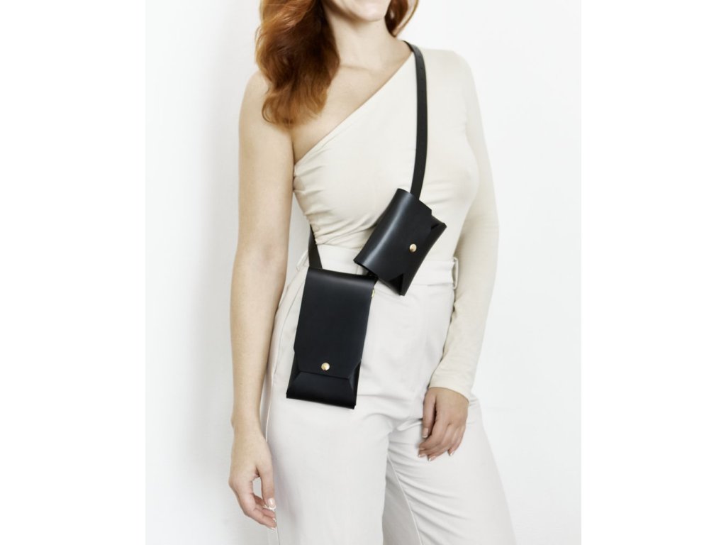 Sada dvou praktických a elegantních taštiček s crossbody popruhem. Díky této sadě můžete vyrazit do města, na procházku či na párty bez kabelky. Vše potřebné totiž vměstnáte do taštiček a vaše ruce tak zůstanou volné. Taštičky jsou k popruhu připojeny poutky, takže můžete jednu odepnout a druhou nosit na popruhu samostatně. Popruh je nastavitelný a má dostatek dírek, takže celou sadu můžete nosit i kolem pasu jako pásek. Praktické a rychlé zapínání taštiček je na magnet.