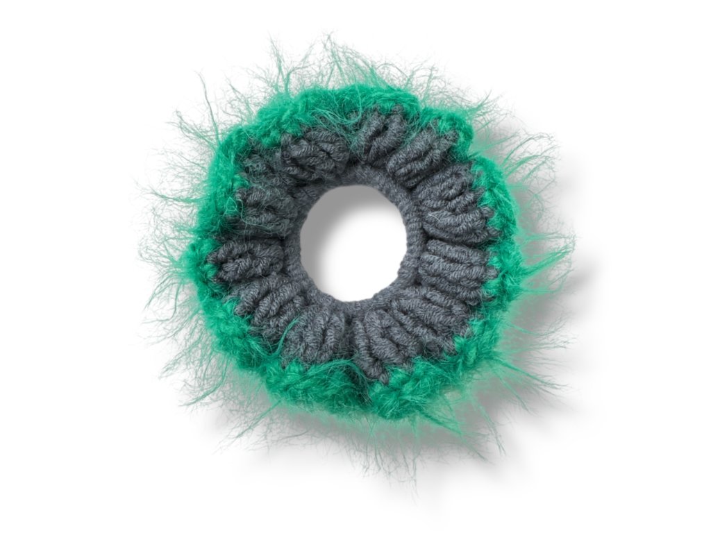 CARAMBOL TEXTURES háčkovaná scrunchie gumička - GRAY IN GRASS