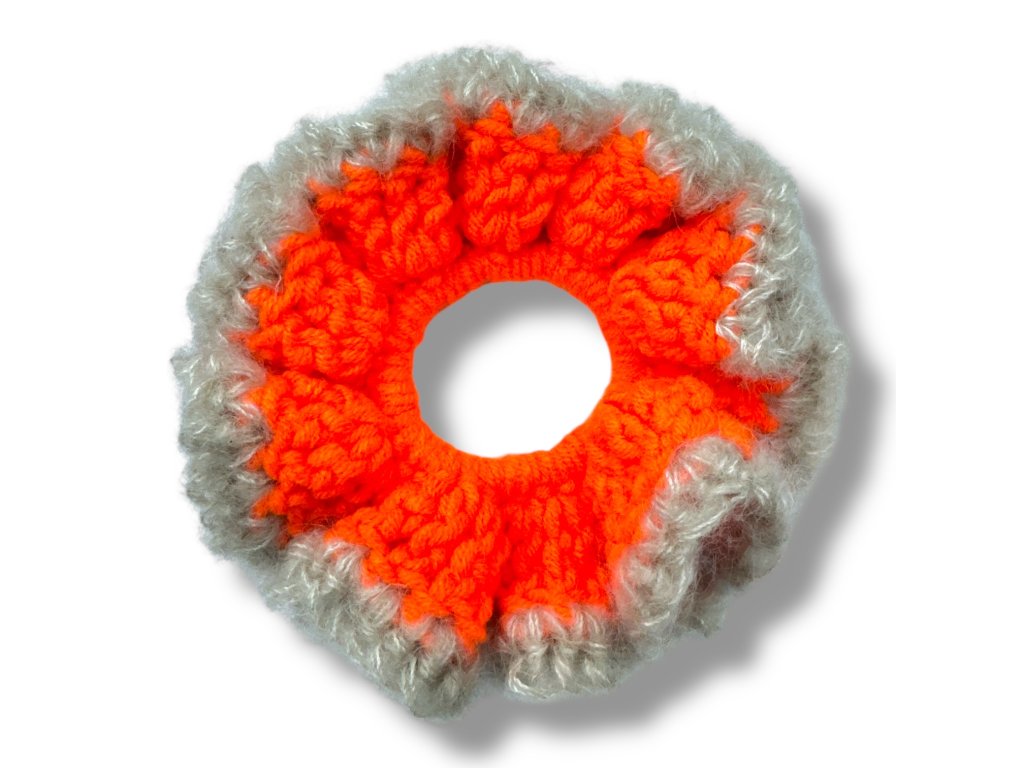 CARAMBOL TEXTURES háčkovaná scrunchie gumička - NEON ORANGE