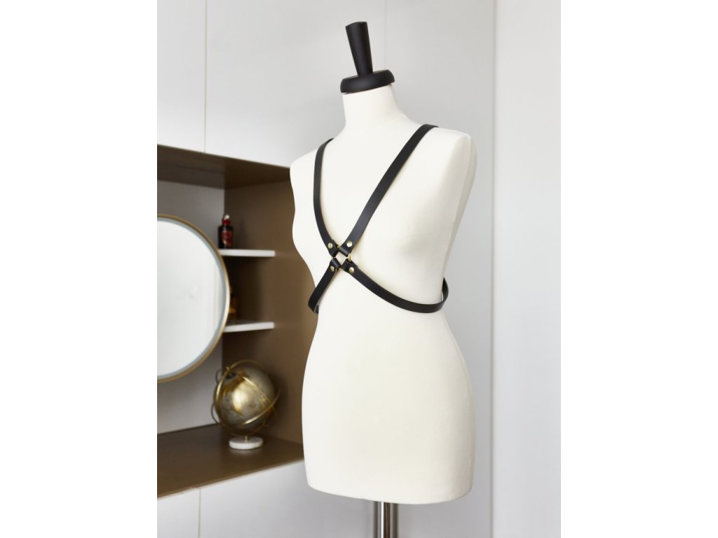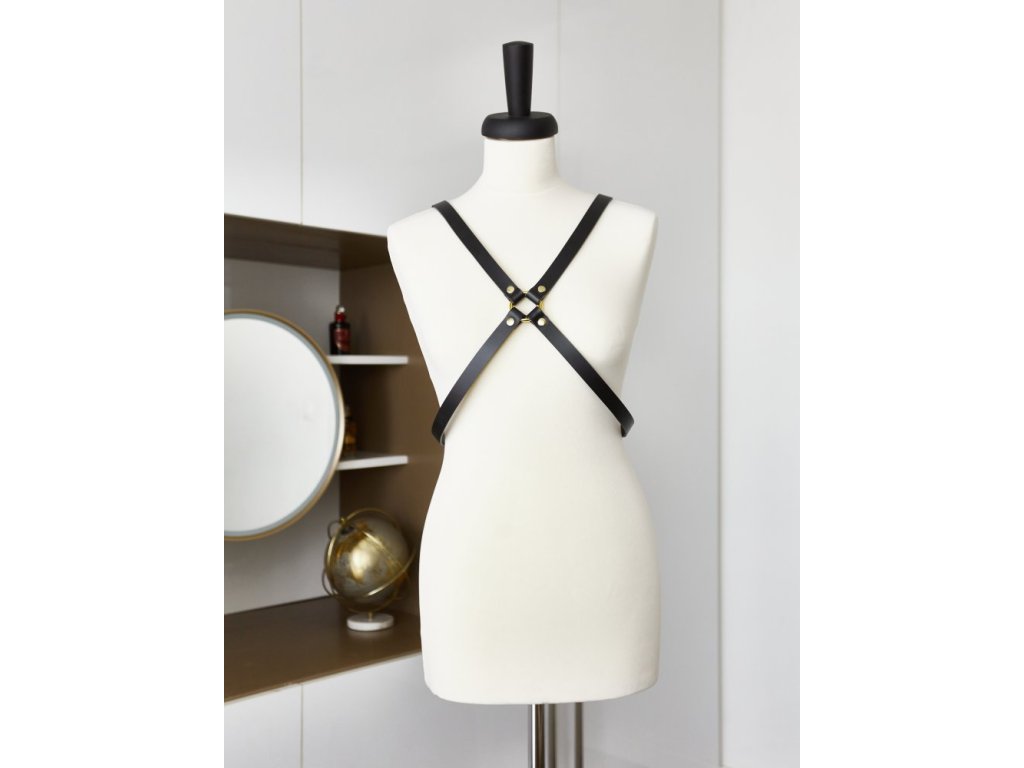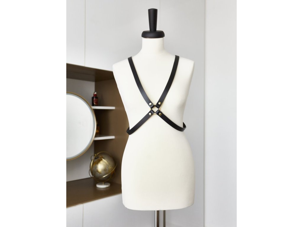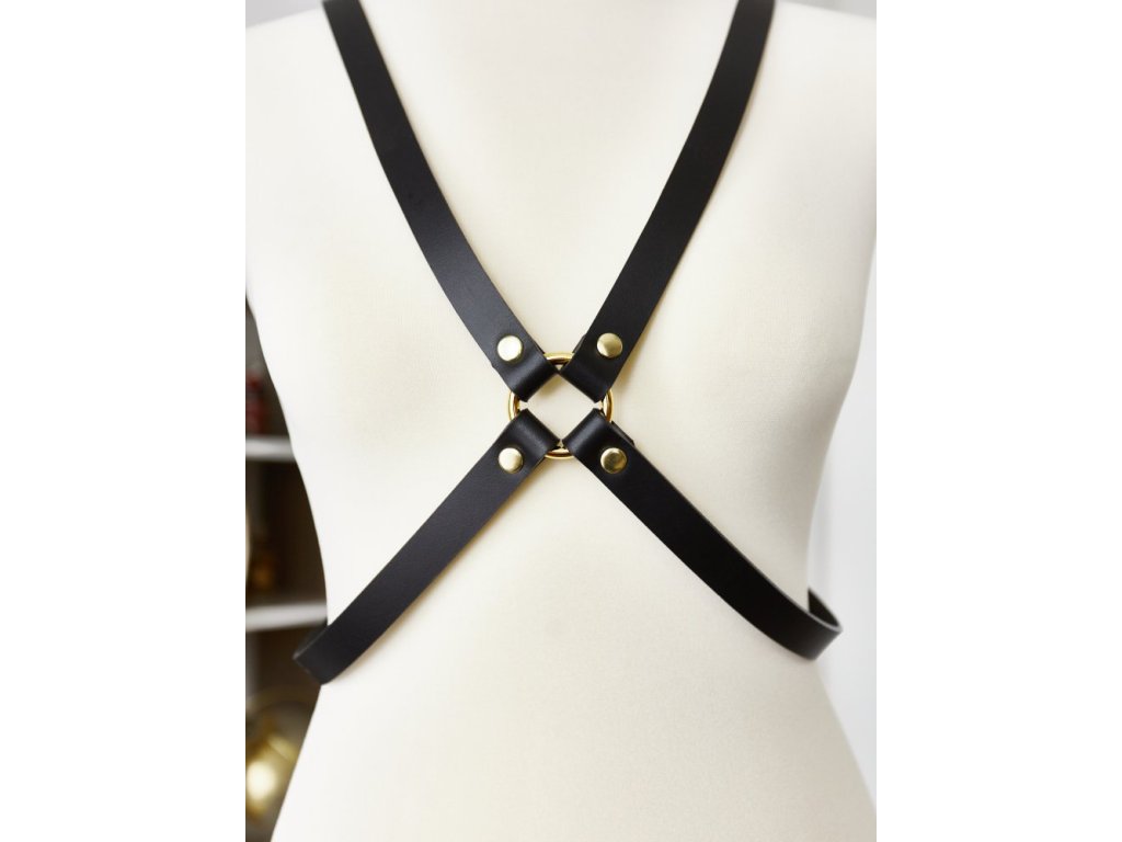 Zrzáky kožený harness / postroj - TRIVIA / černý se zlatým kováním
