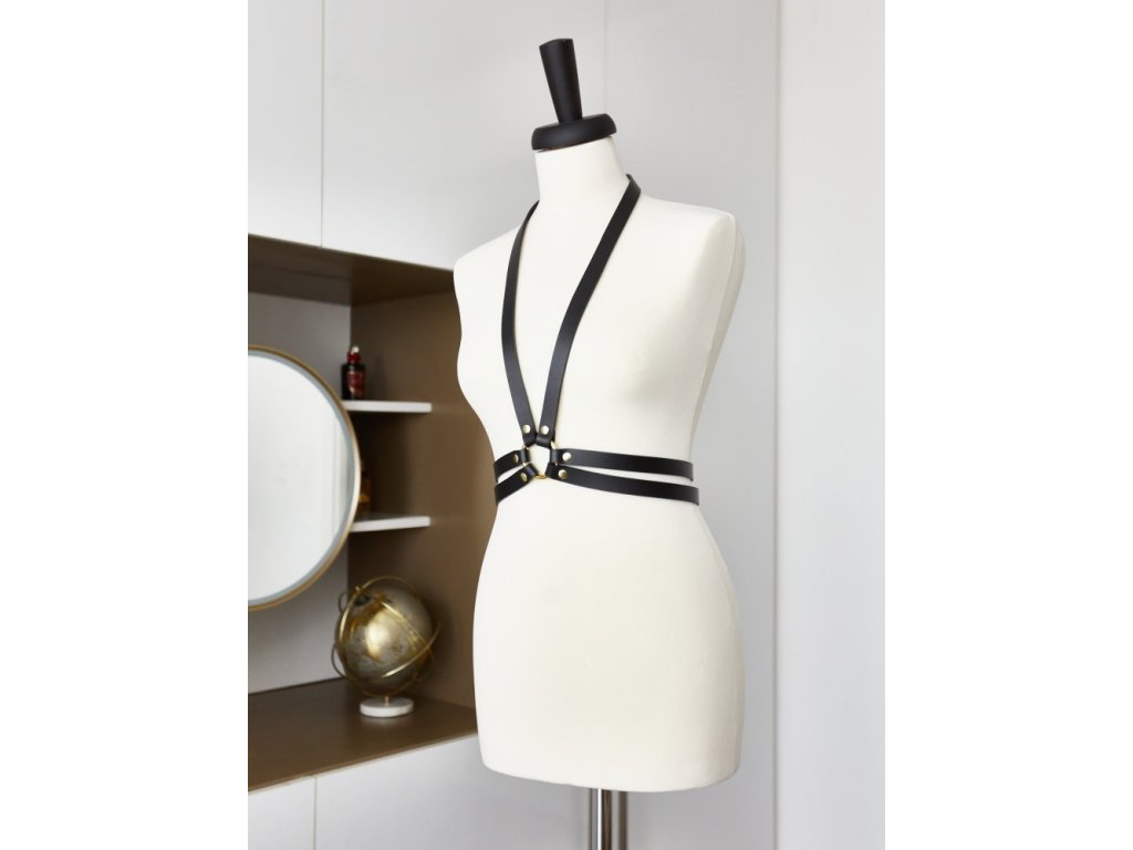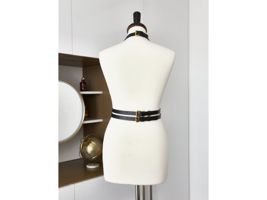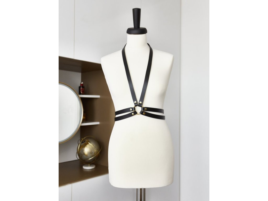 Zrzáky kožený harness / postroj - VENILLA / černý se zlatým kováním