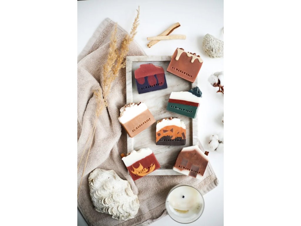 Ručně vyráběné designové mýdlo s lahodnou vůní zralých třešní a jemného nugátu