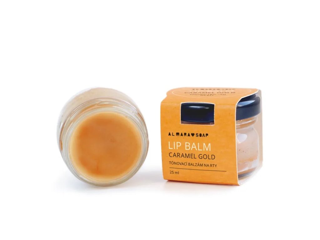 Tónovací a vyživující balzám na rty s vůní karamelu