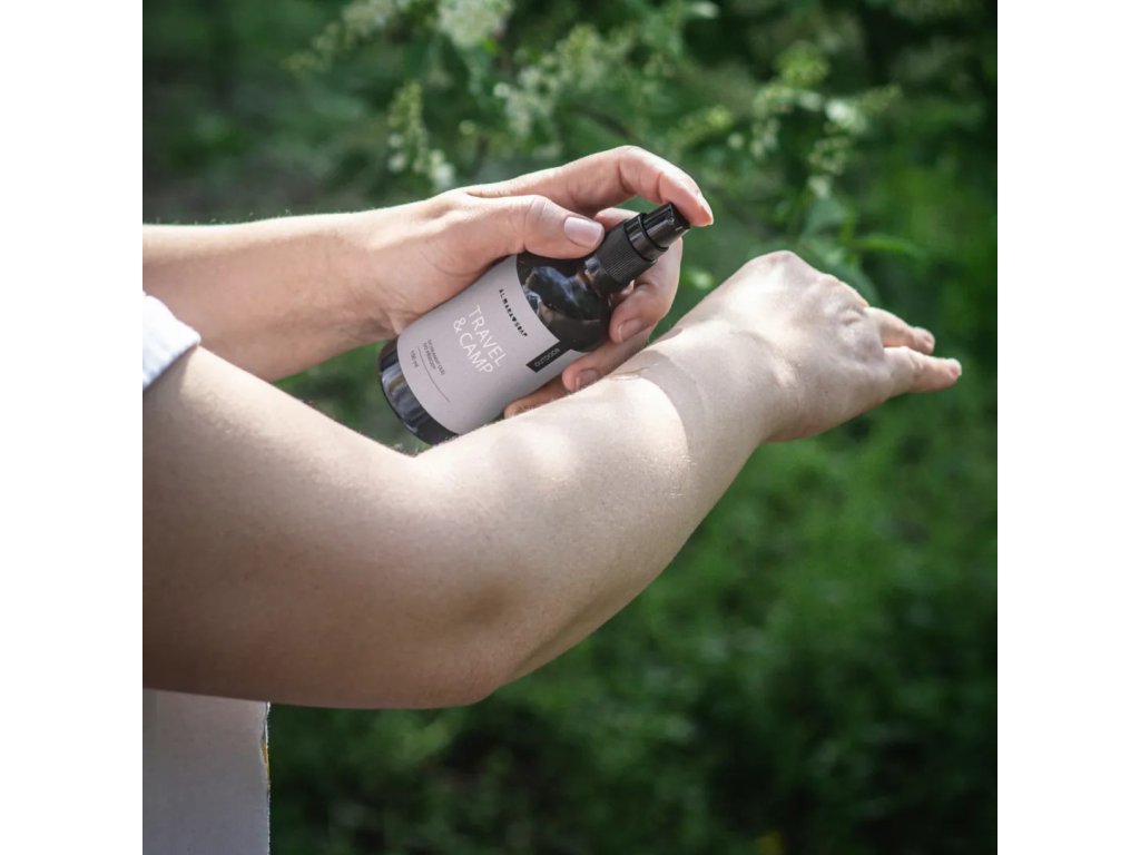 Pečující olej na tělo s vonnými esencemi nezbytný pro pobyt v přírodě vám bude dělat společnost od jara do podzimu kdekoli v přírodě - ať už na výletě, pikniku v parku, při kempování, pobytu na vodě i na horách.