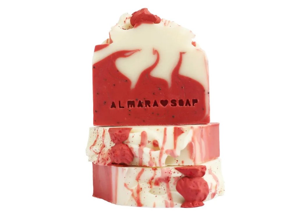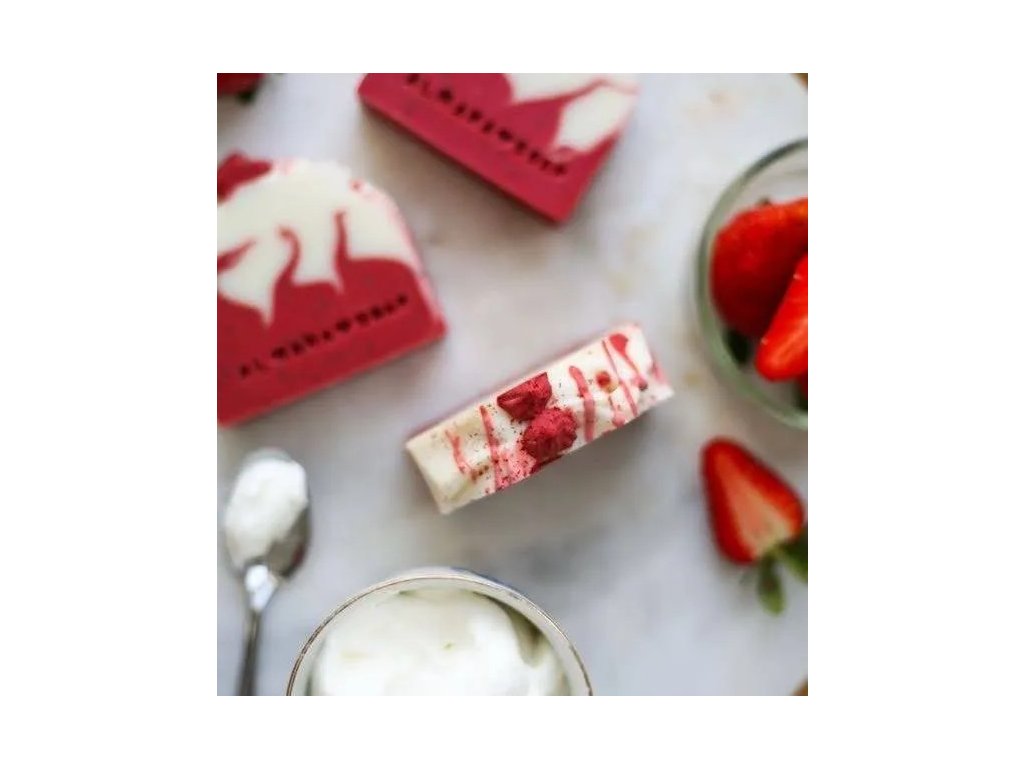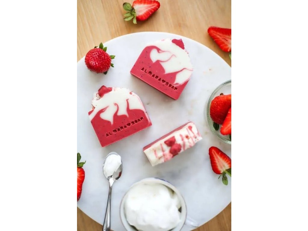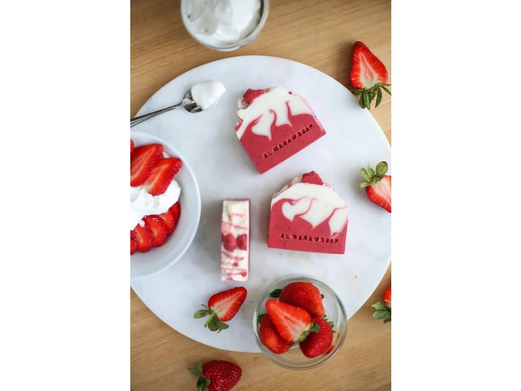 Designové ručně vyrobené mýdlo se sladkou vůní jahod se šlehačkou