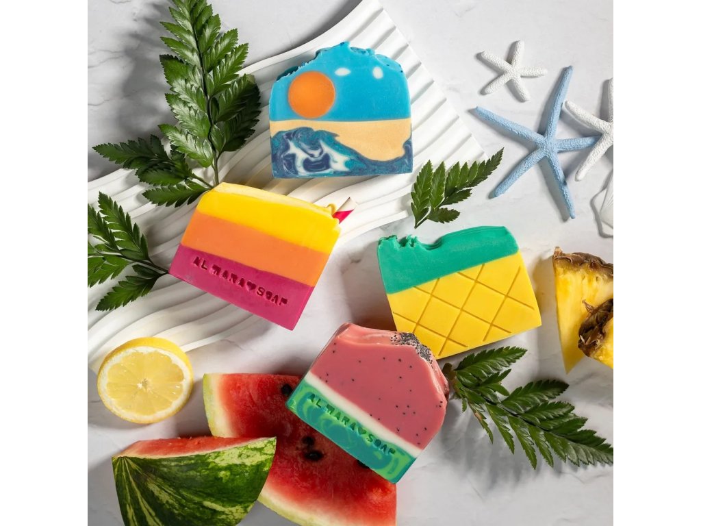 Designové ručně vyrobené mýdlo se svěží vůní a letním designem