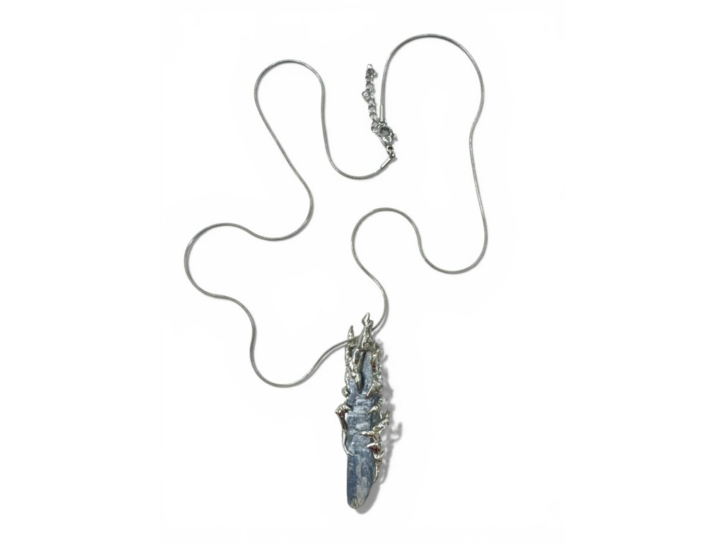 Originální designový náhrdelník ručně vyrobený, který kombinuje jedinečný přírodní křemen s kovovými prvky a řetízkem. Každý kus je unikát – neexistují dva stejné, protože kámen i jeho umístění jsou jedinečné. Náhrdelník je navržen tak, aby působil elegantně a přitom osobitě, takže doplní jak denní, tak i výraznější večerní outfit.