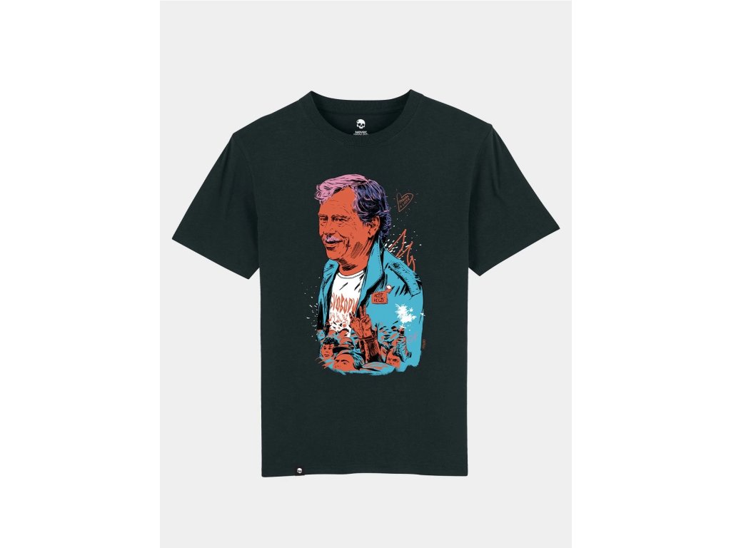 A ačkoli bychom tu neradi Havla prodávali jako matrjošku, rozhodli jsme se jich přeci jen pár natisknout. Původní ilustraci jsme drobně upravili tak, aby kompozičně fungovala i na triku a vy si ji můžete již dnes předobjednat na našem e-shopu. A tentokrát se nemusíte bát, obrácený kříž jsme na záda nakonec nedali.