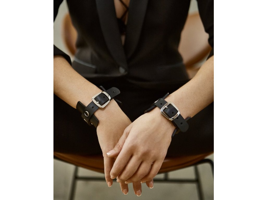 Náramek z pravé kůže. Má oboustranný design, takže jej lze nosit na dva způsoby. Ještě efektněji vypadají náramky v páru na obou rukou. Pasují na obvod zápěstí 15 až 18 cm.