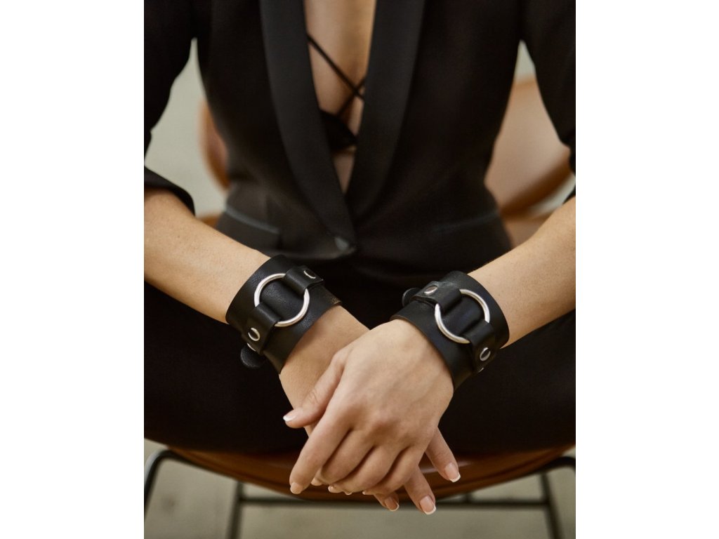 Náramek z pravé kůže. Má oboustranný design, takže jej lze nosit na dva způsoby. Ještě efektněji vypadají náramky v páru na obou rukou. Pasují na obvod zápěstí 15 až 18 cm.