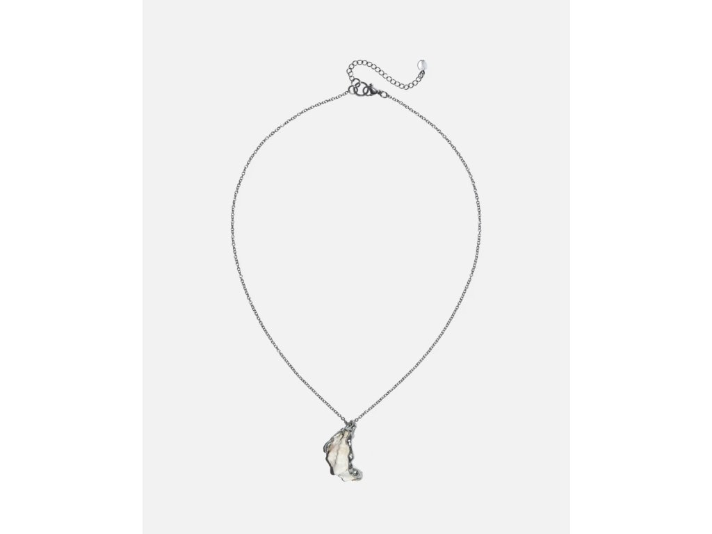 Minimalistický náhrdelník s úlomky mušlí v rámečku připomínajícím kapající bahno.