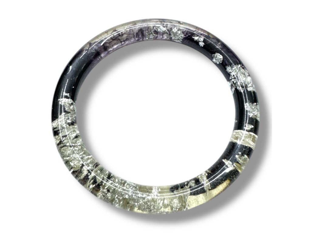 Materiál: ručně litá eco-poxy pryskyřice s plátky stříbra